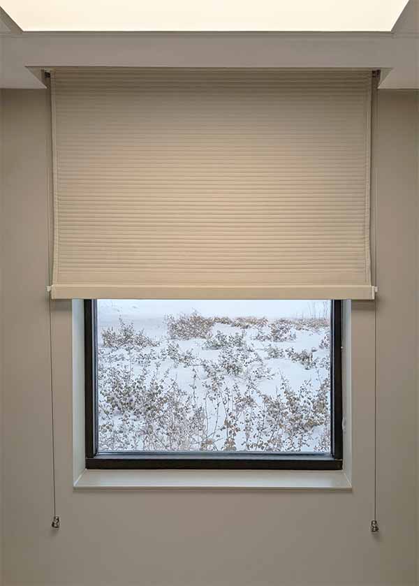 The hem bar cable guides run the length of the window, secured at a position just below the sill.